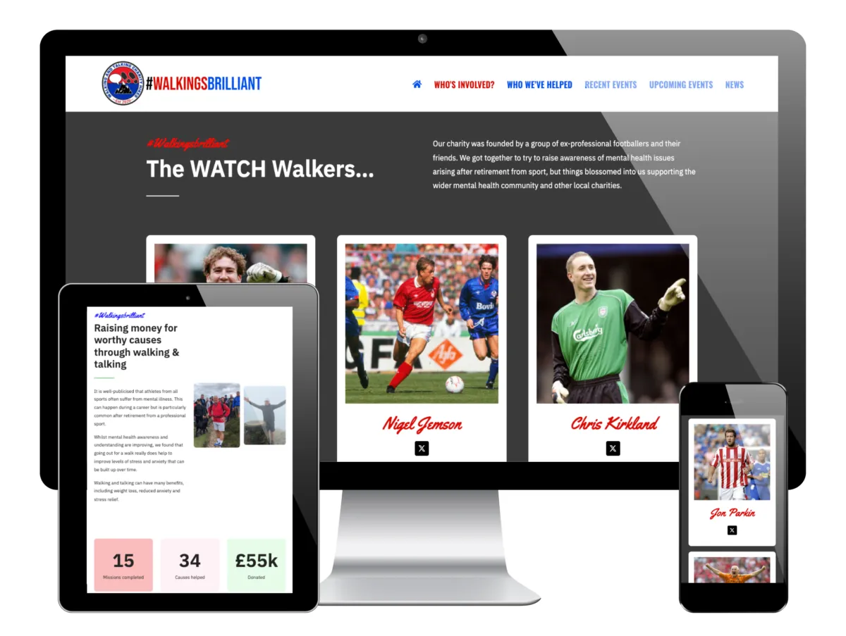 Being local to us, Mark Crossley (ex-Nottingham Forest goalkeeper), approached us and asked to meet to discuss their existing website. They wanted a more professional look, aiming to become registered as a charity, and ways to advertise events on the site.